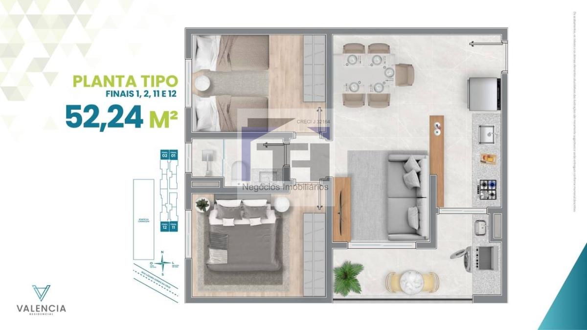 Apartamentos de 52 a 58m²;