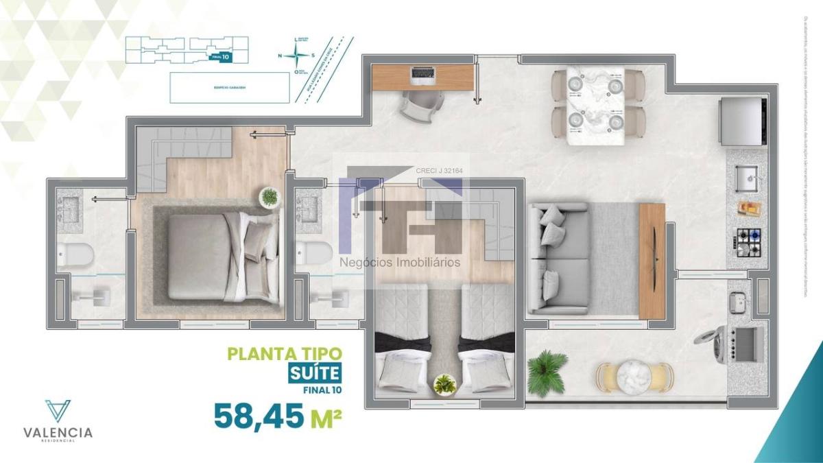 2 dormitórios (com opção de suíte);